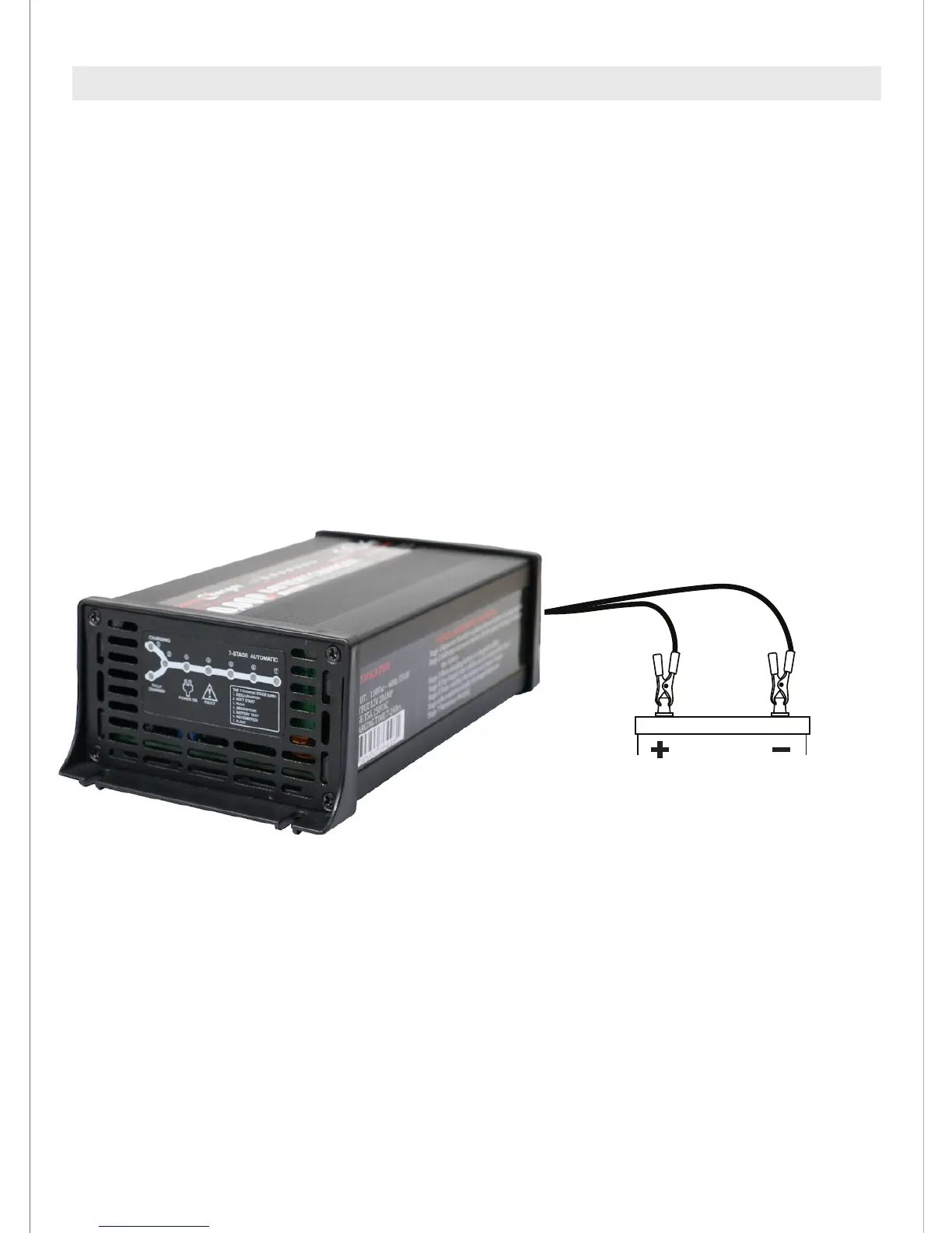 Connect the BLACK lead (battery clip) from the charger to the Negative (-)