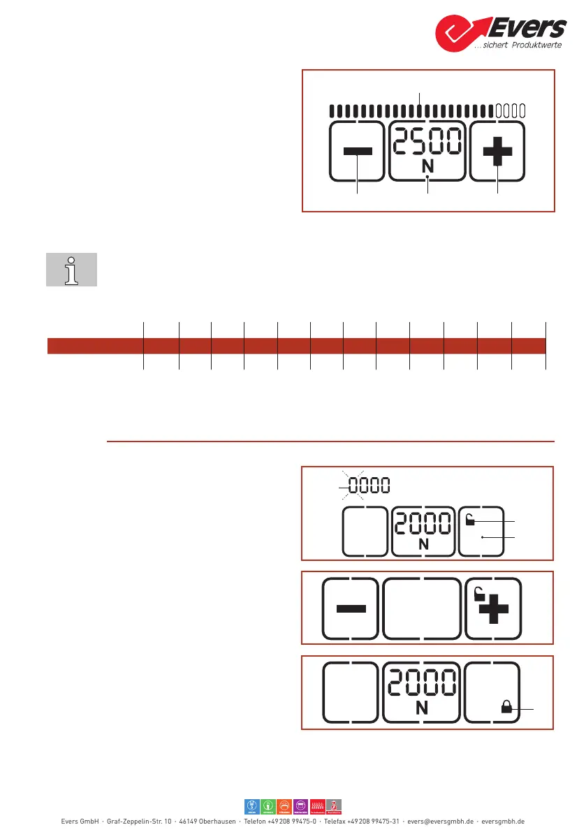● Switchbetweendisplayin"N"or"lbf":Presstheashing"Tensionforce"button(2)for
