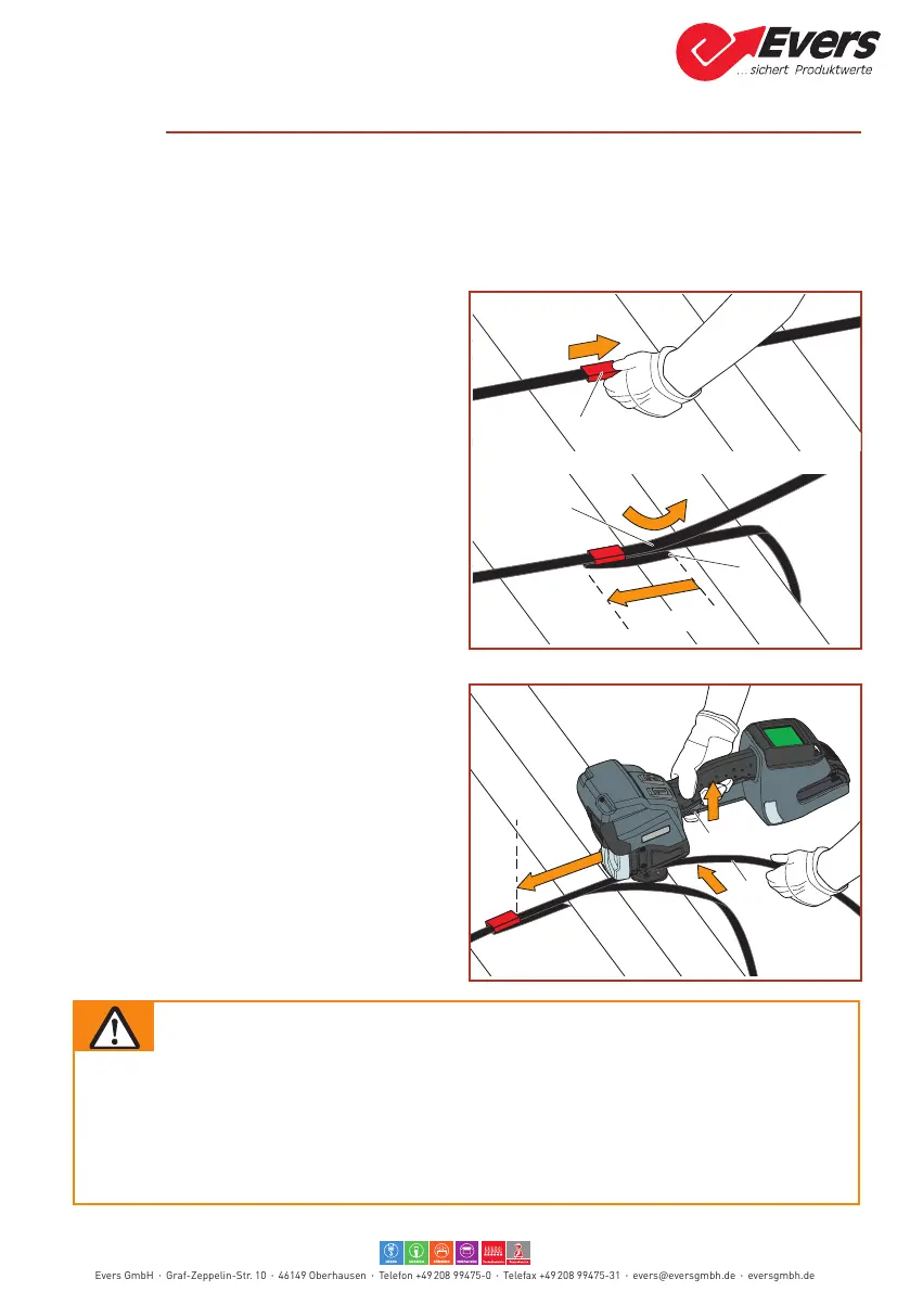 After sealing, cut the strap using a suitable tool (strap cutter).