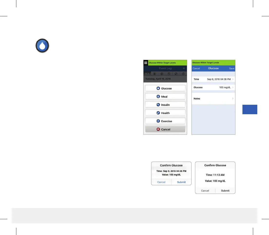 6. On the Confirm Glucose pop up box, tap Submit to confirm