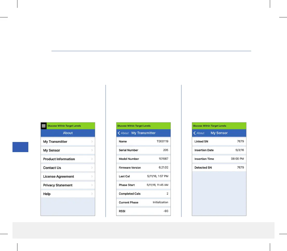You can view product information about your smart transmitter, your sensor and your Eversense CGM