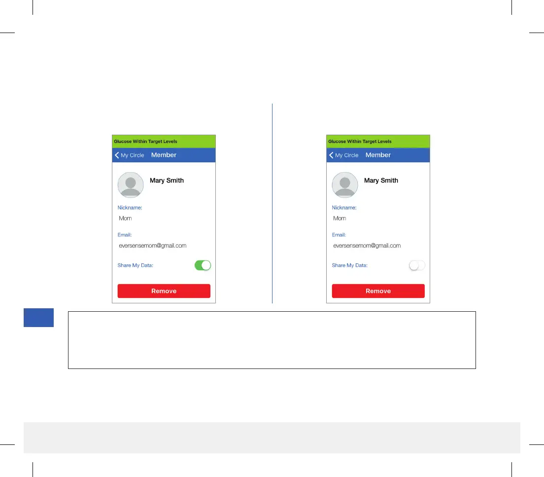of your Eversense CGM System glucose data, alerts or event history. Members will see your status as Oine on