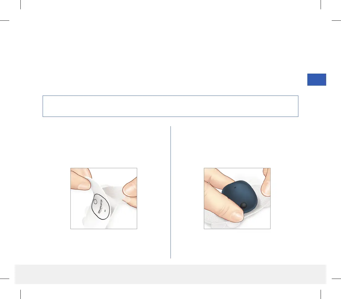 The smart transmitter must be secured on the skin directly over the sensor with the disposable adhesive patch. Each