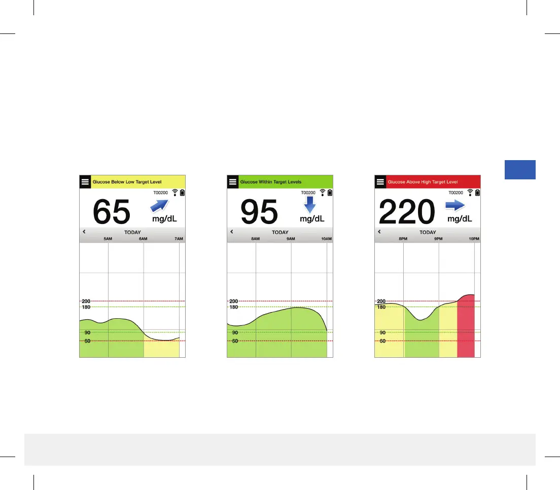 • Current sensor glucose value – the current glucose value should be displayed in black.