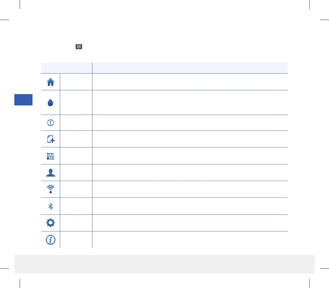 The Menu icon ( ) appears at the top left corner of all app screens and provides easy navigation to other app