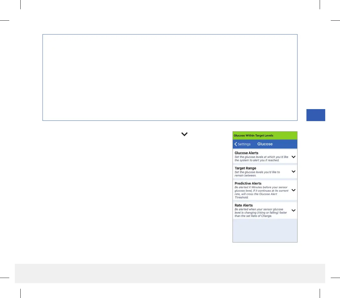 On the Glucose Settings screen, tap the “carat symbols” to expand and