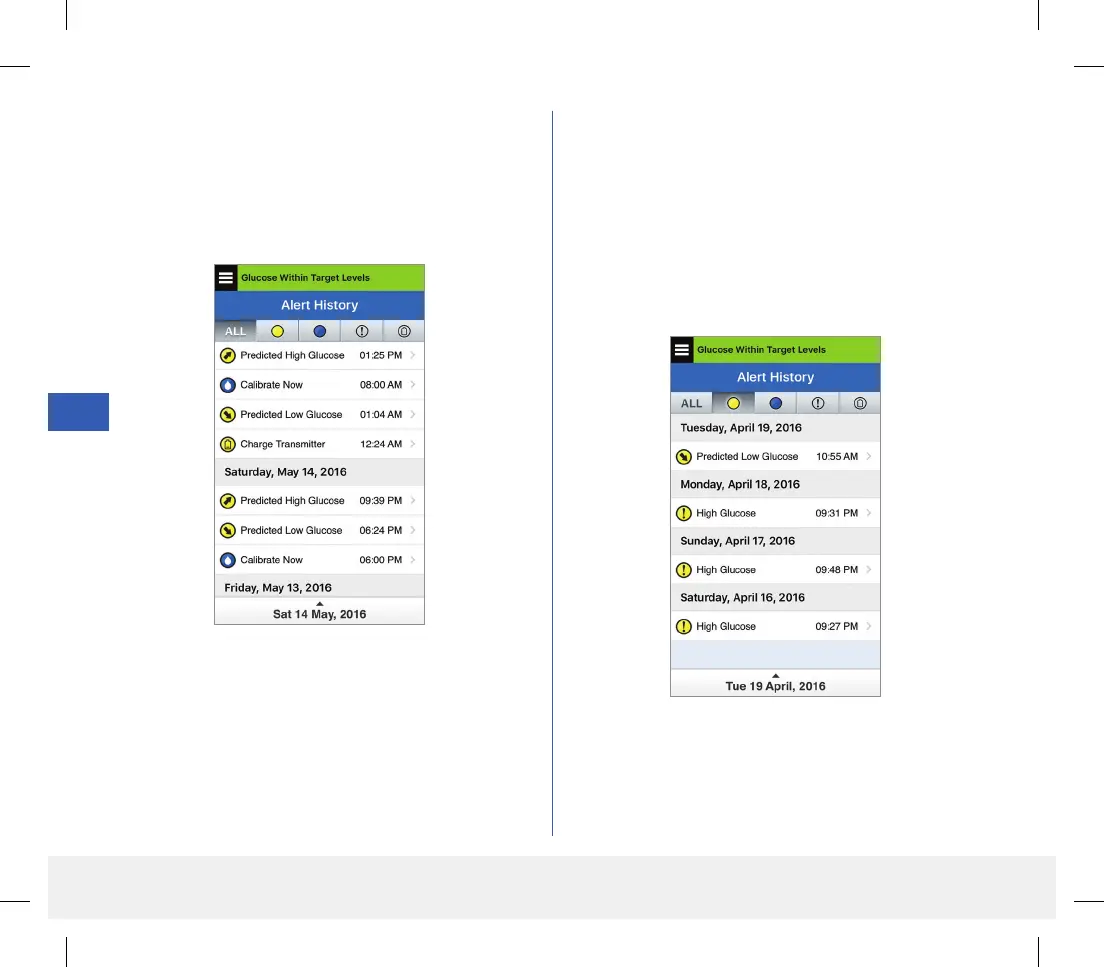 • The ALERT HISTORY screen will list