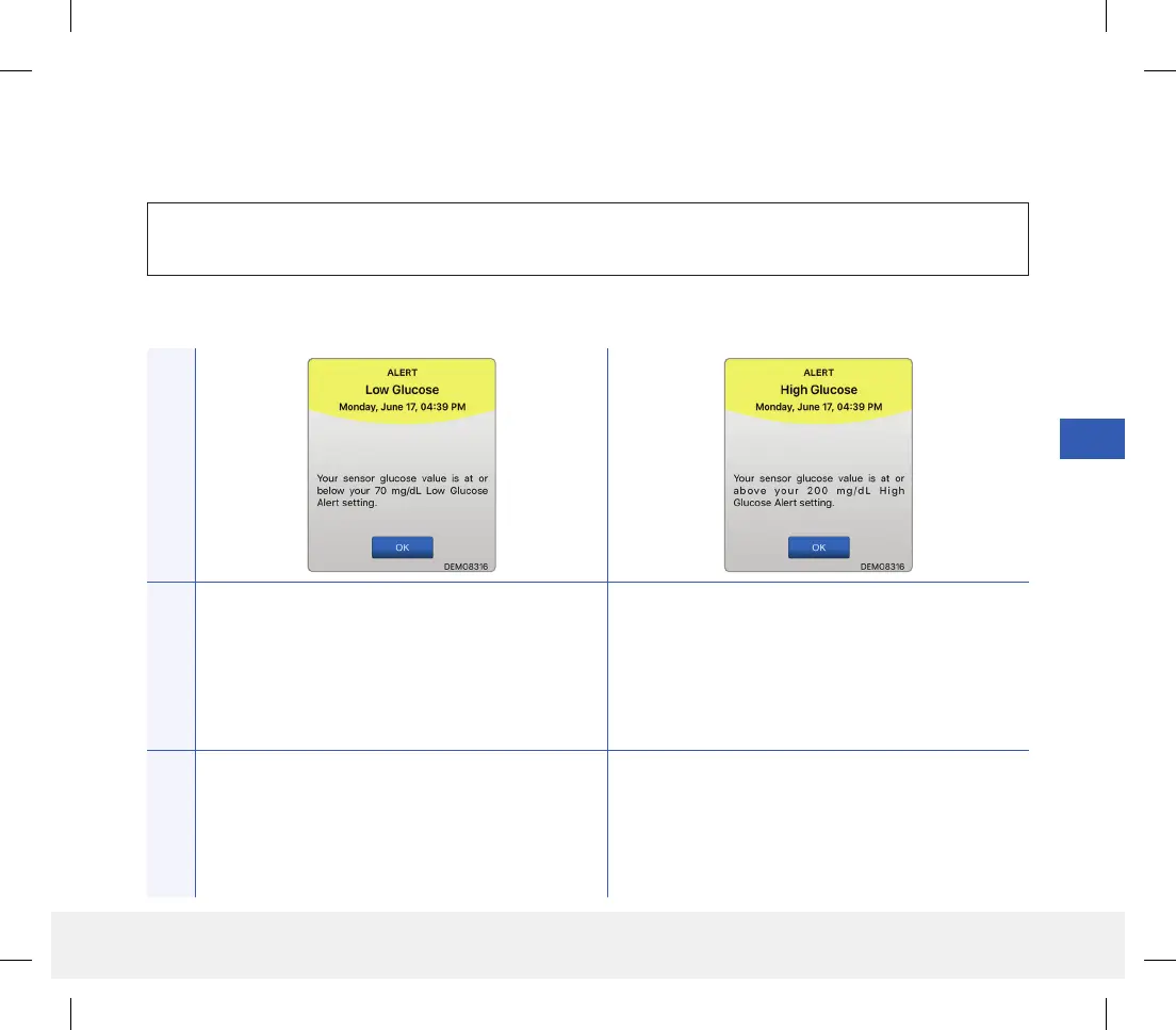 The following table lists the alerts and notifications you may receive on the Eversense App.