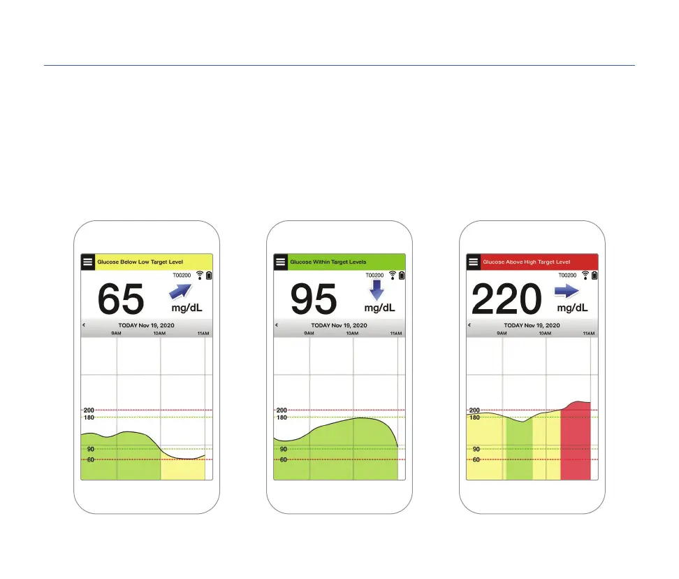 • Current sensor glucose value – the current glucose value should be displayed in black