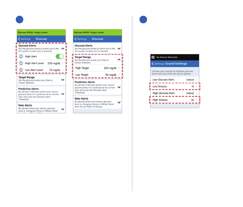 Set glucose targets and glucose alerts