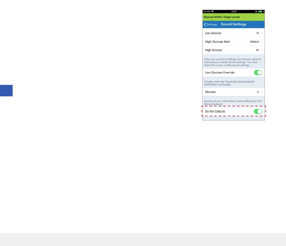 not receive any alerts or notifications from the Eversense App. The DND icon will