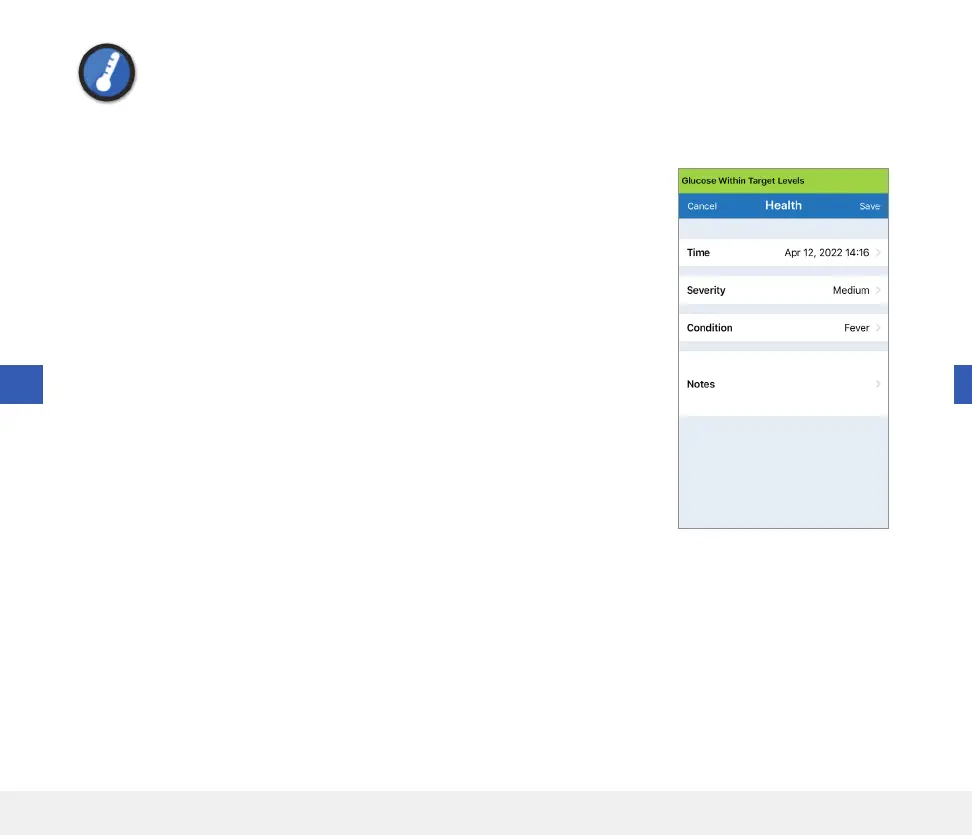 Enter the type of health condition, severity, and date and time.