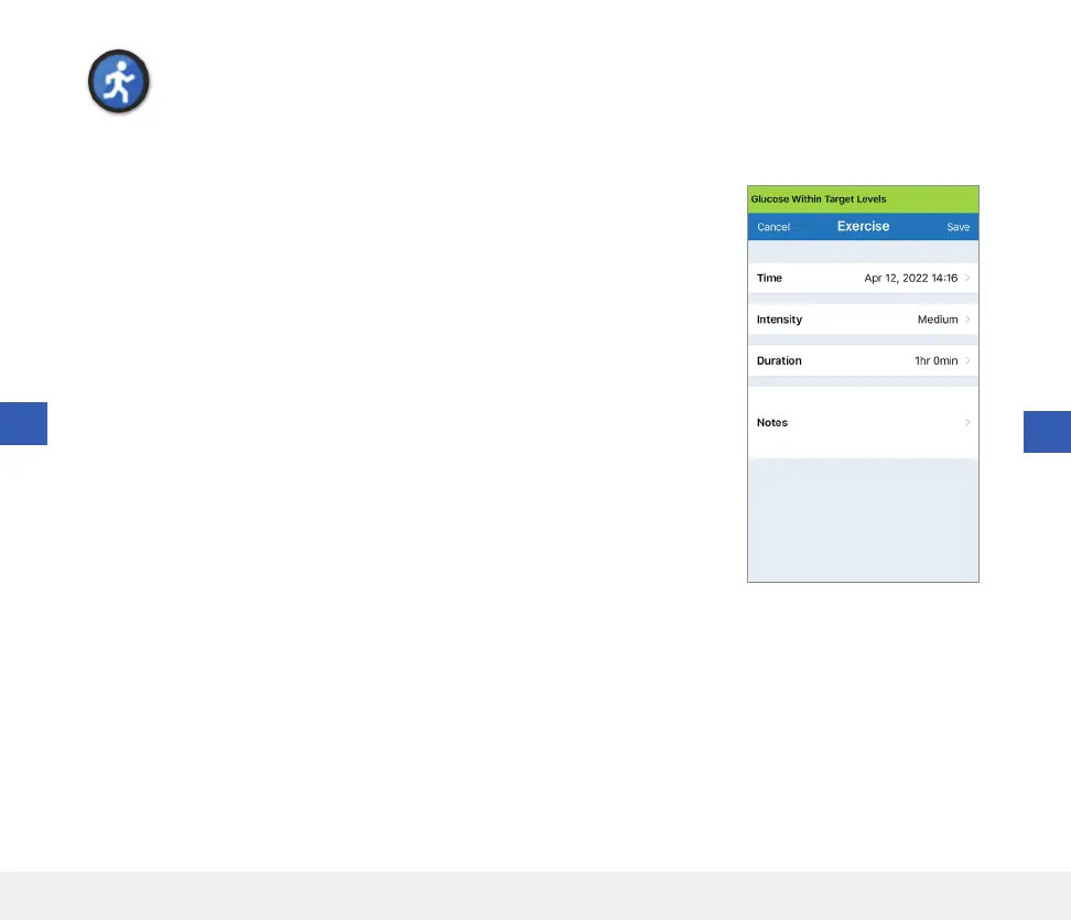 Enter exercise type, duration, and intensity.