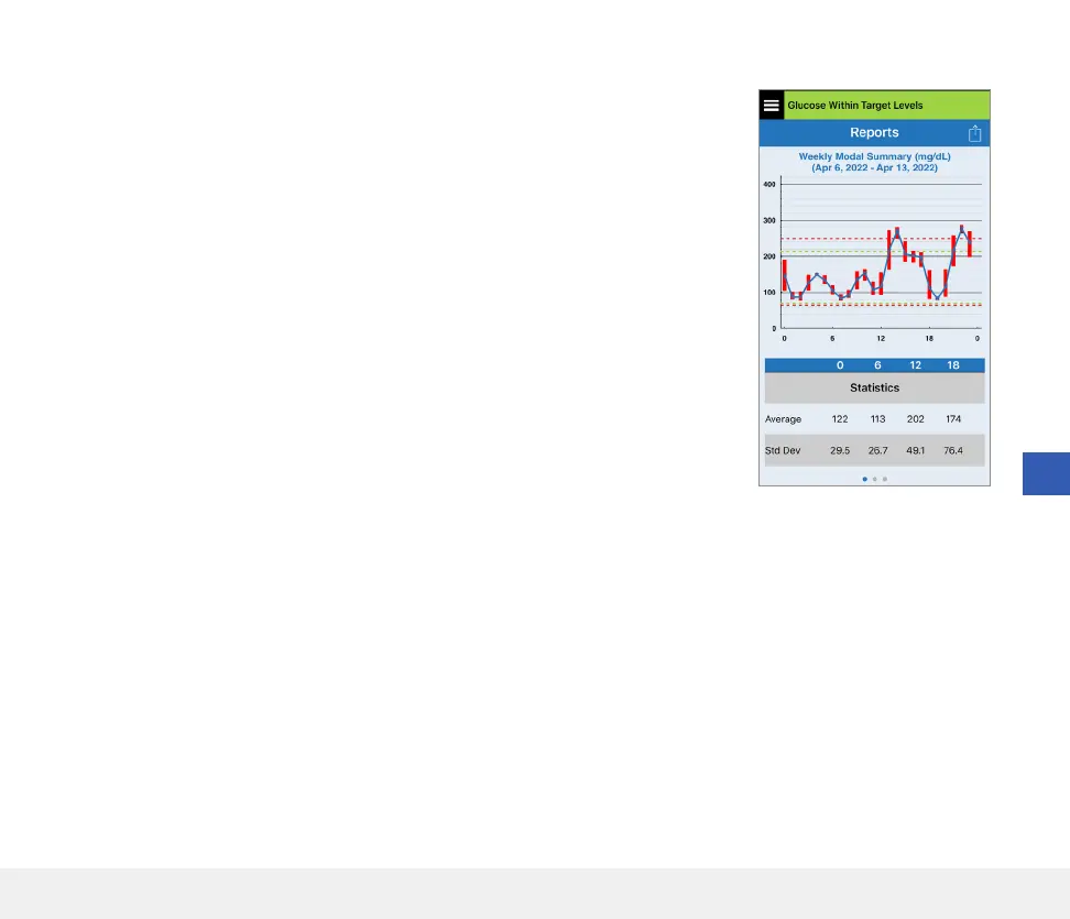 • The green horizontal dotted lines are your pre-set High and Low Glucose