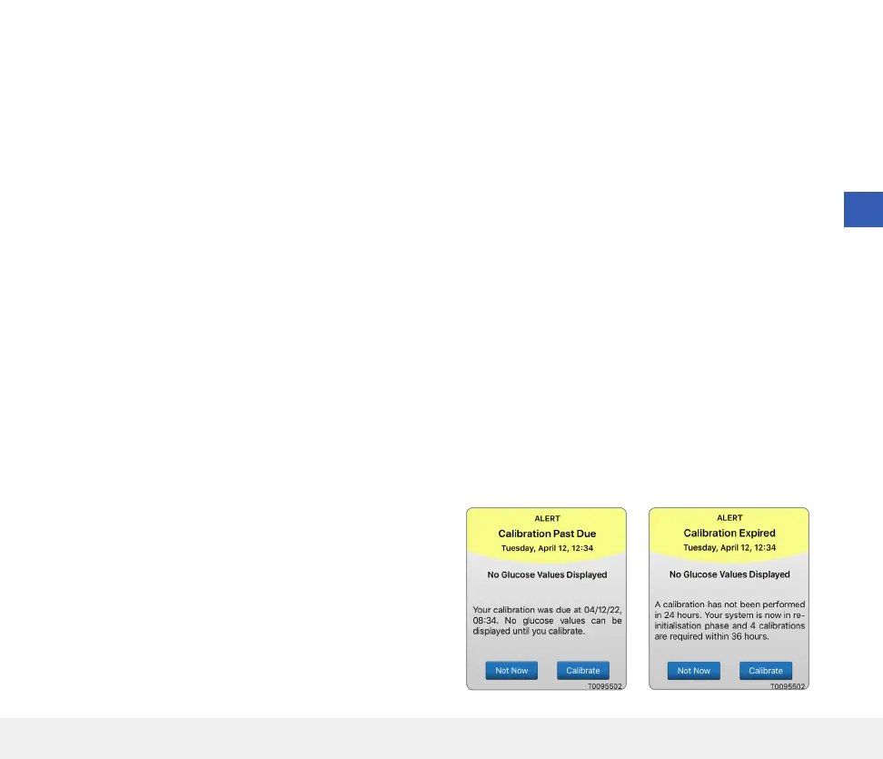 • 12 hours after your last successful calibration, the system prompts you to calibrate.