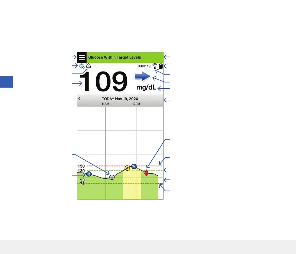 arrow and any alerts from the Eversense E3 CGM System. If no trend arrow is displayed, the system does not have