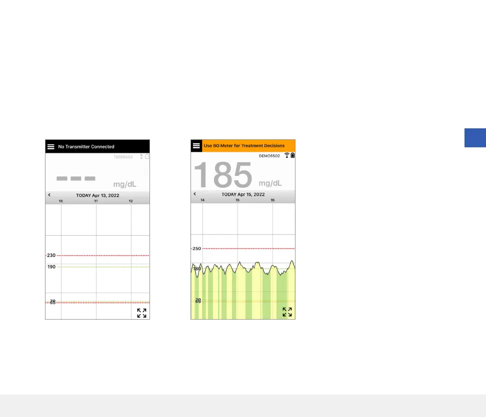 • The current sensor glucose value is displayed in grey.
