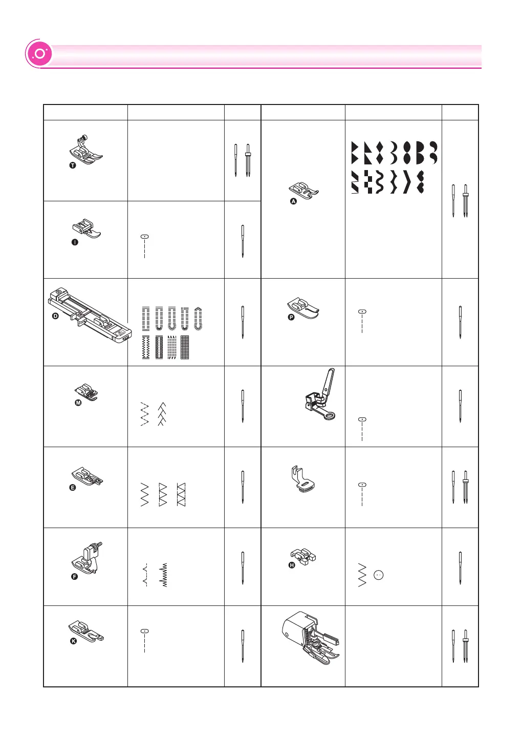 PRESSER FOOT CHART