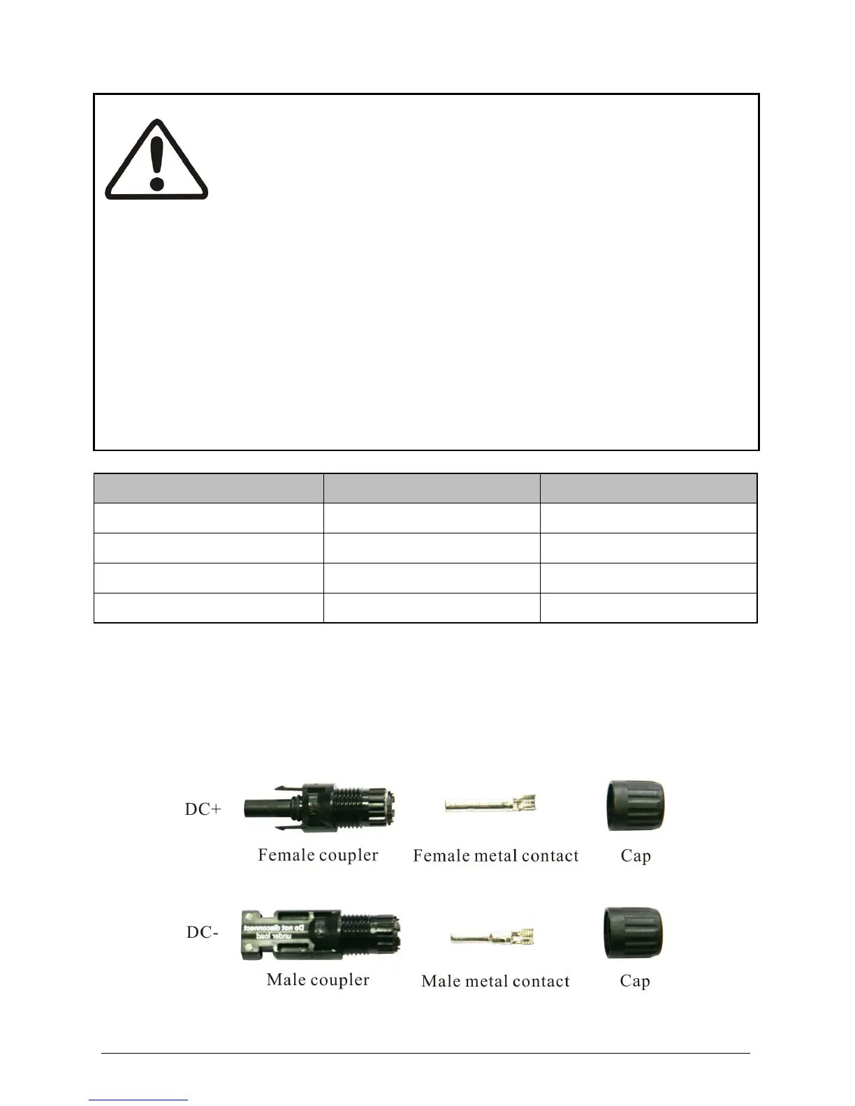 3. Before connecting PV modules to DC terminals, please make sure the polarity of