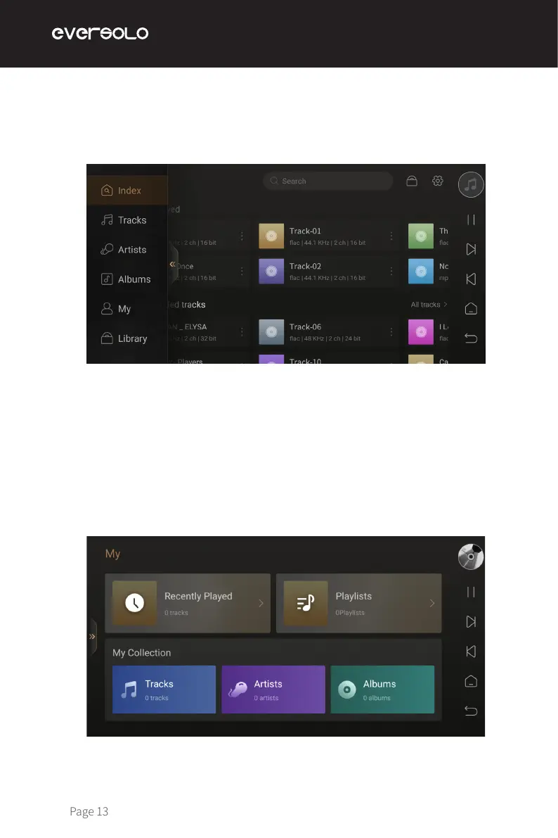 “My” will show recently playing records, playlists added according to personal