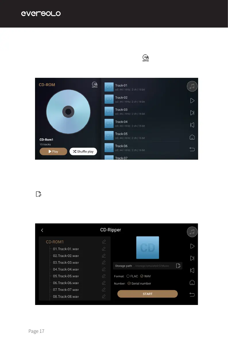 les from CD. CD ripping instructions: Apps > CD > Click “ ” to start CD ripping.
