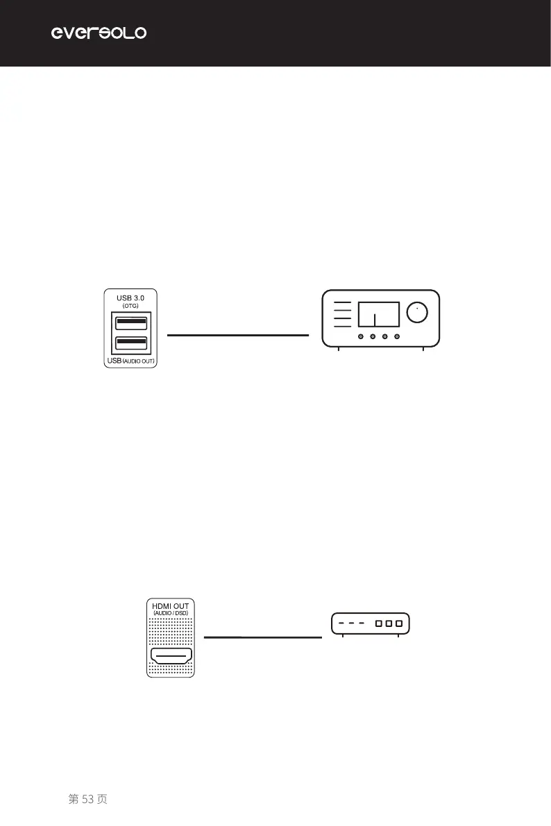 使用USB音频数据线,插入本机“USB AUDIO”端口,连接外部DAC的USB输入口,进入输入
