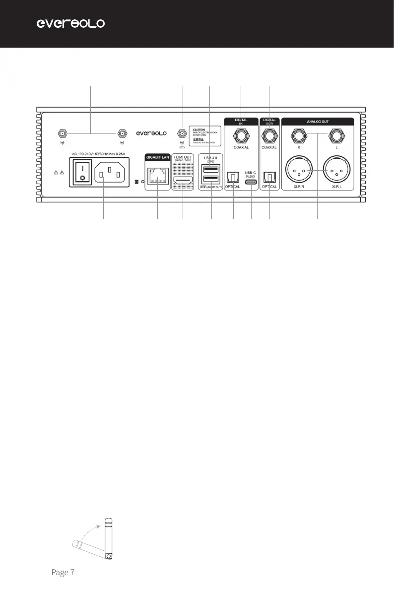 ⑤ USB (Audio out): USB audio output for connecting audio devices (DAC)