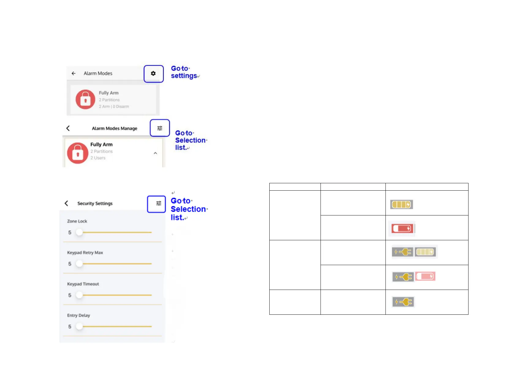 Please Press central alarm button>go to settings>Choose selection List icon on the
