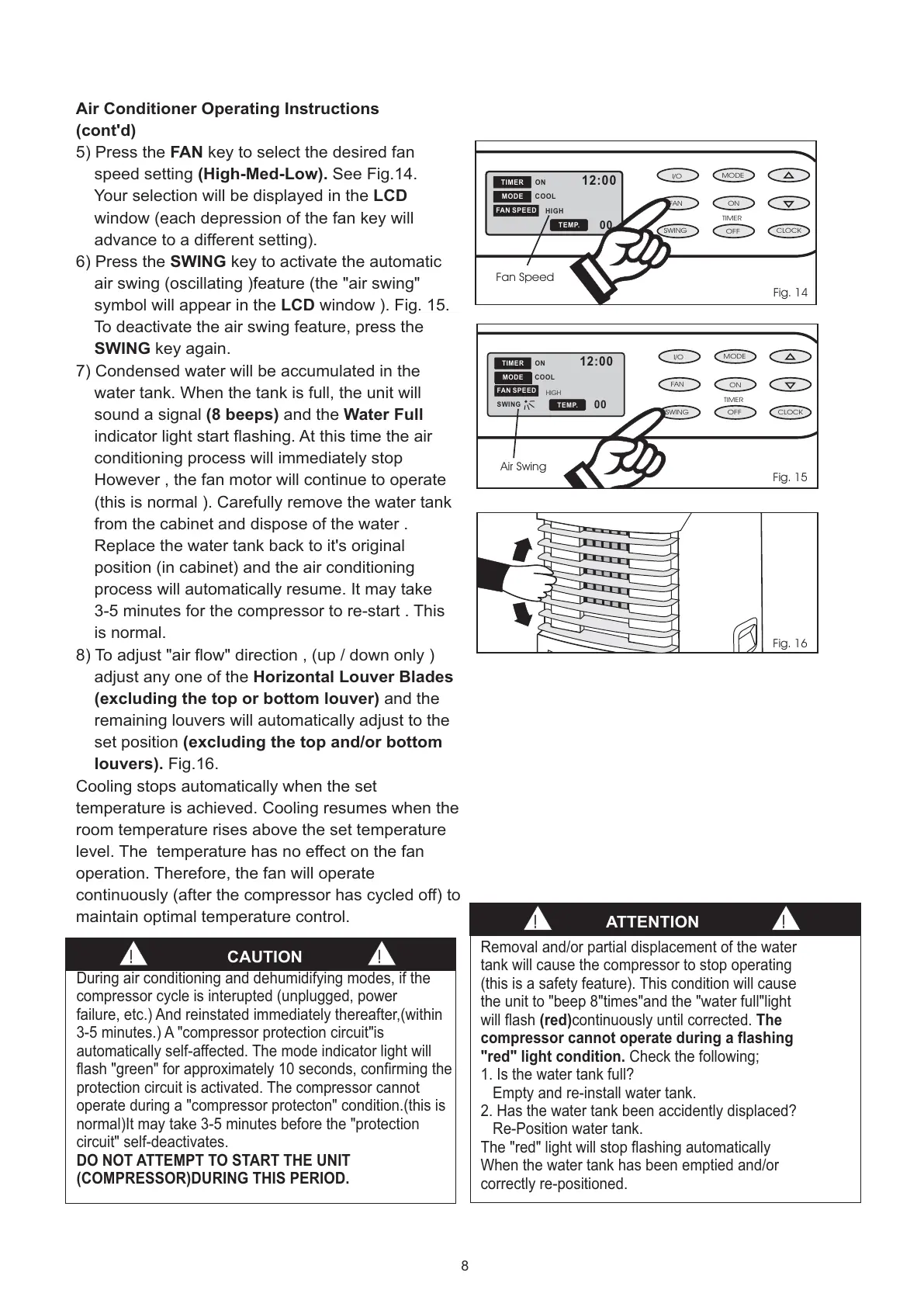 8) To adjust "air flow" direction , (up / down only )