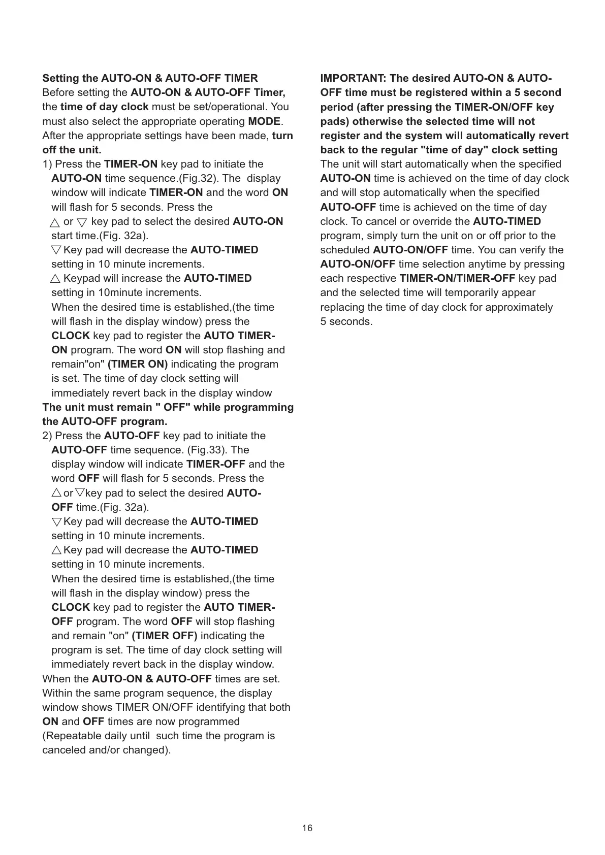 Setting the AUTO-ON & AUTO-OFF TIMER