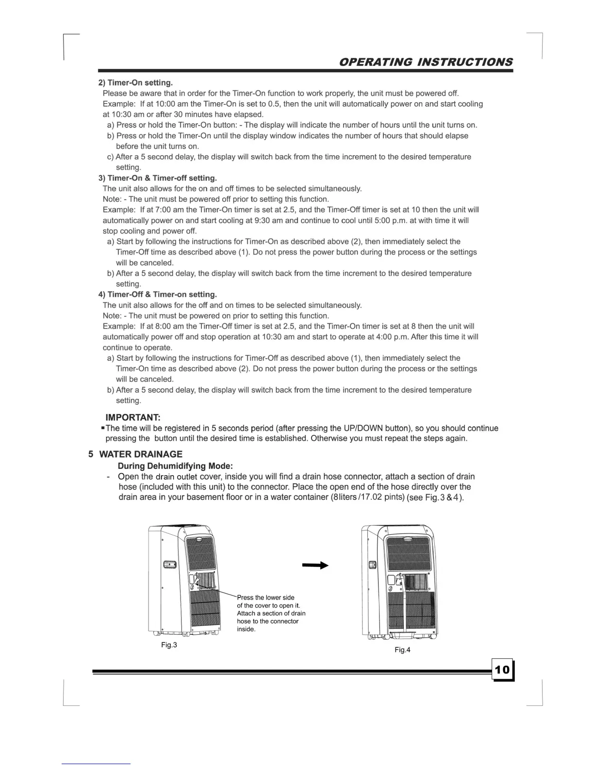 Everstar MPM2-12CE-BB4 - Timer-On Setting; Timer-On & Timer-Off Setting; Water Drainage