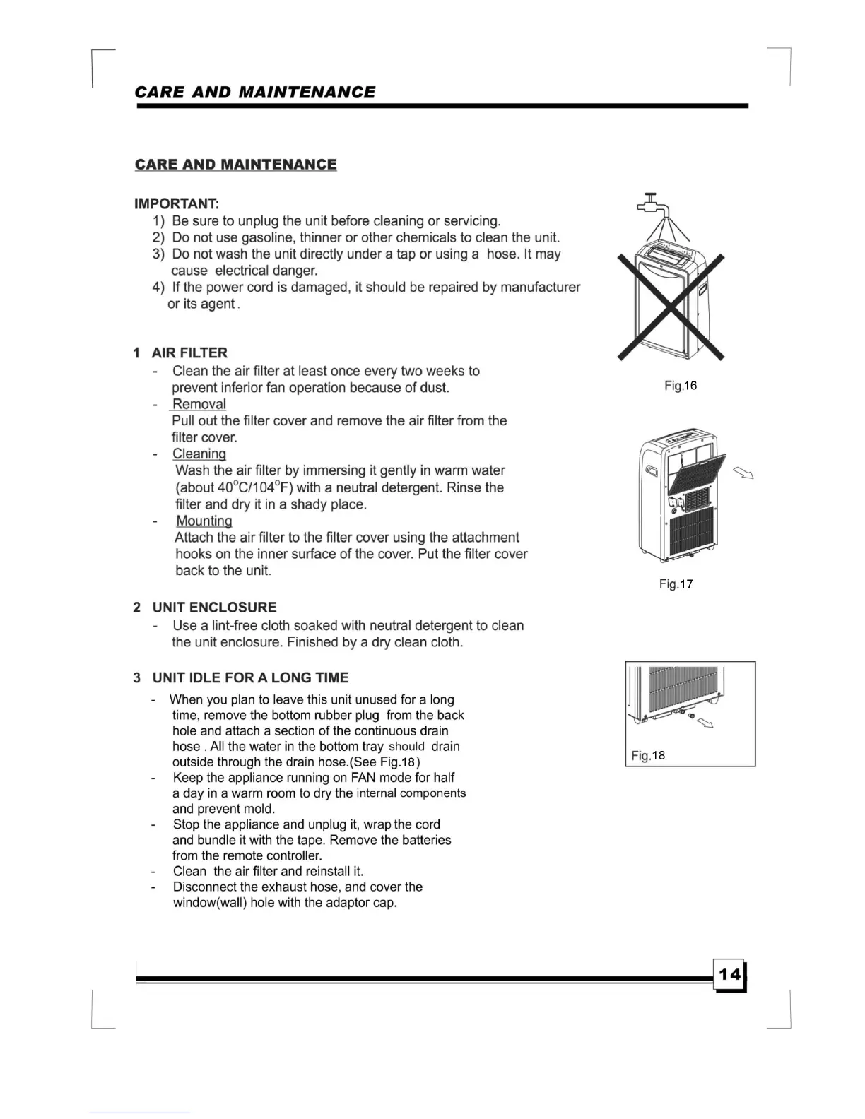 Everstar MPM2-12CE-BB4 - Care and Maintenance; Air Filter; Unit Enclosure; Unit Idle for a Long Time