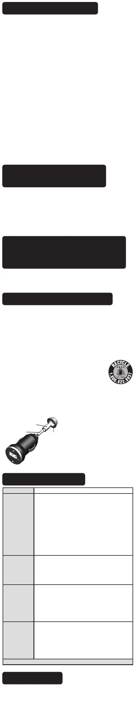 • Check the plug fuse in the 12V DC/USB charging adapter. Replace the fuse following the