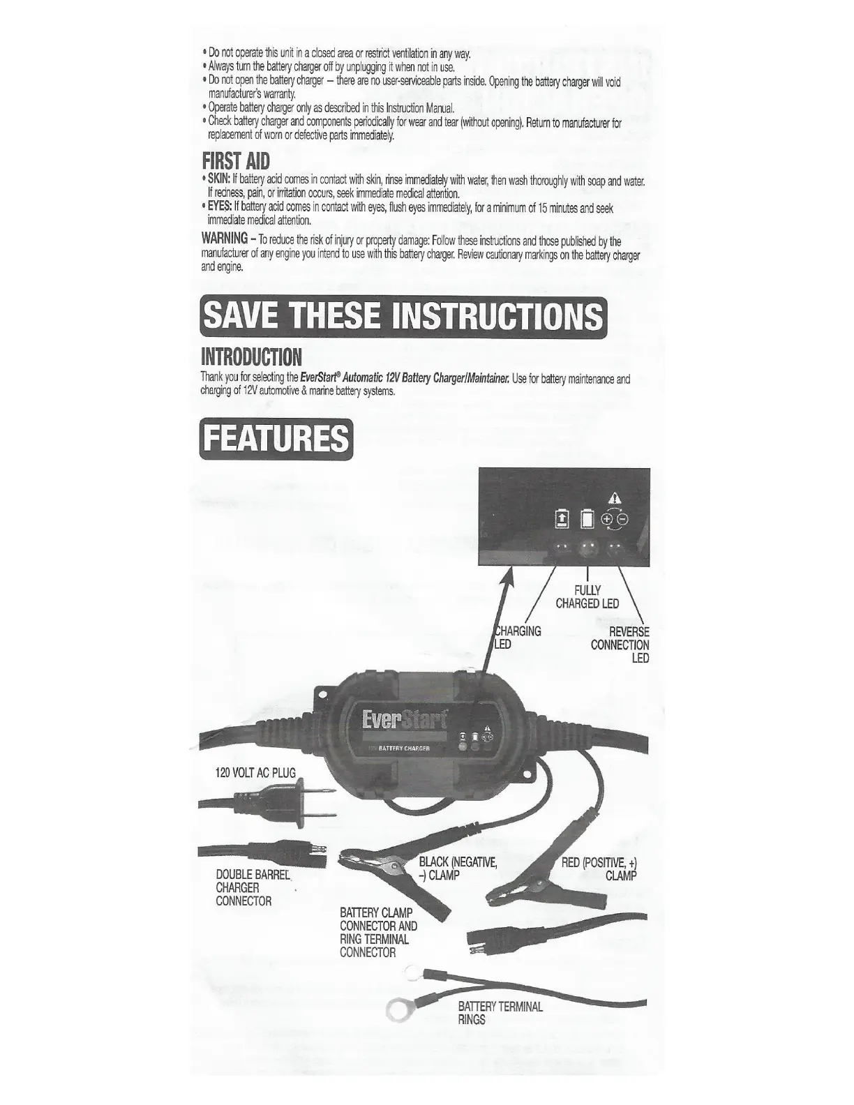 EverStart BM1E - First Aid; Skin Exposure; Eye Exposure; Introduction