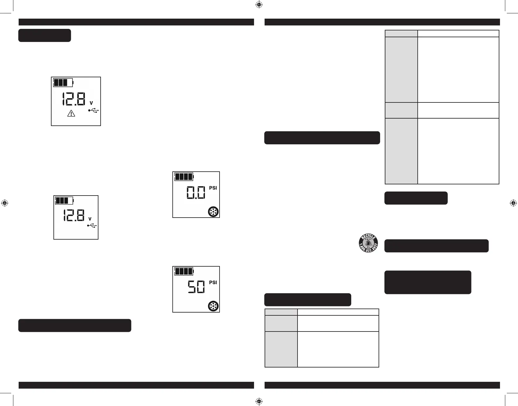 conditions on both USB Ports: low battery voltage fault, overload and short circuit. If a