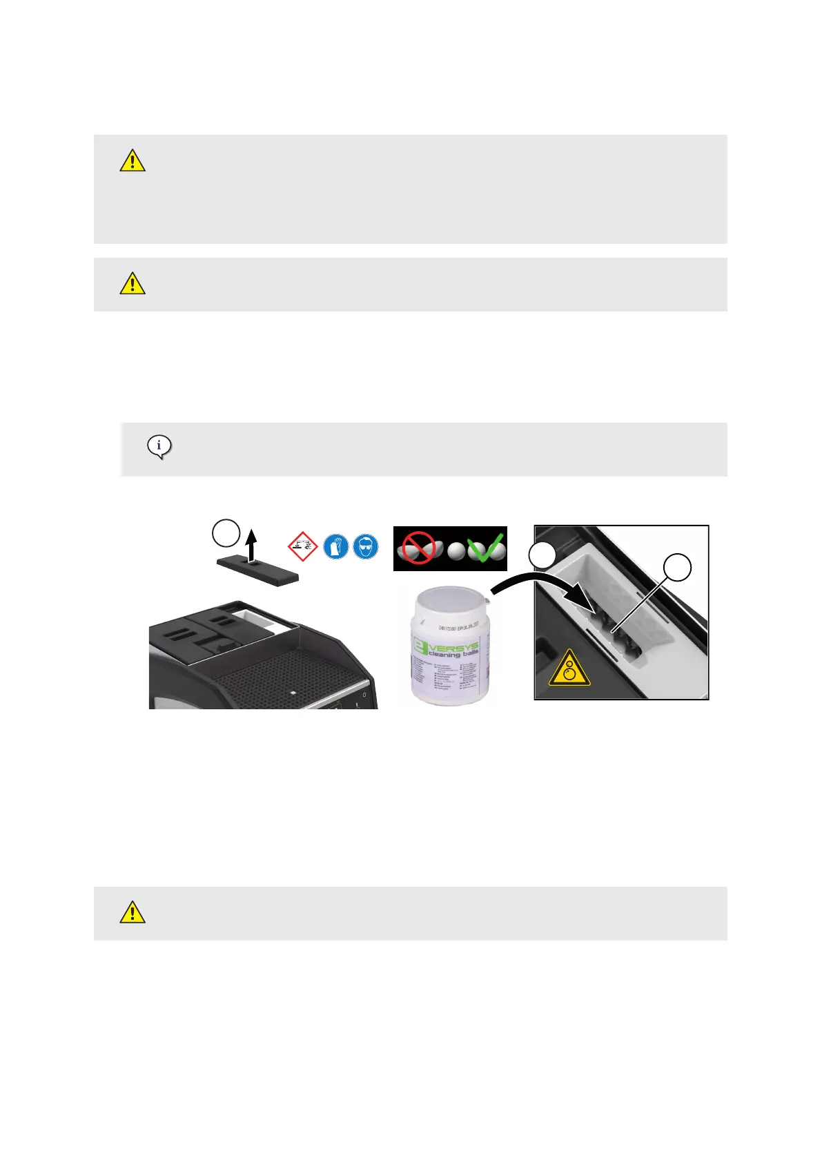 7.3.1. Rell and visual check of the coee cleaning balls dispenser