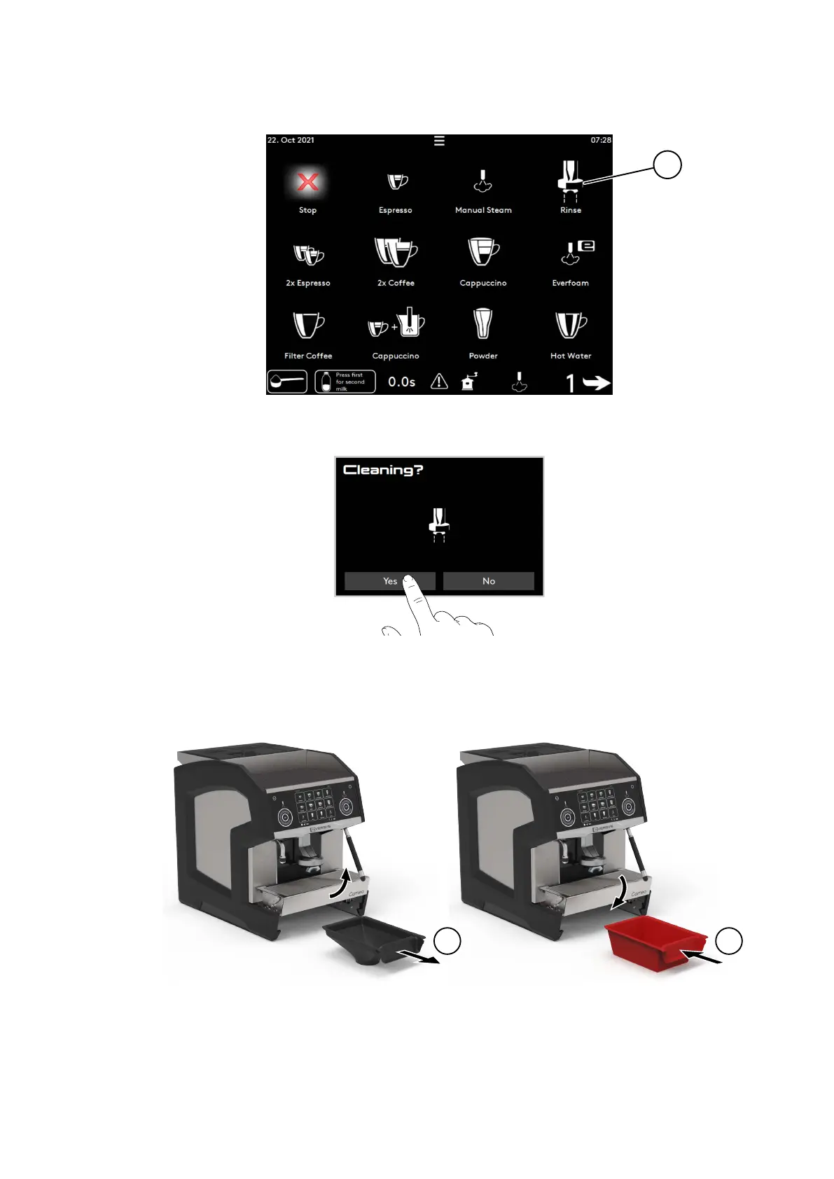 Install the red drawer (3) for the cleaning procedure.