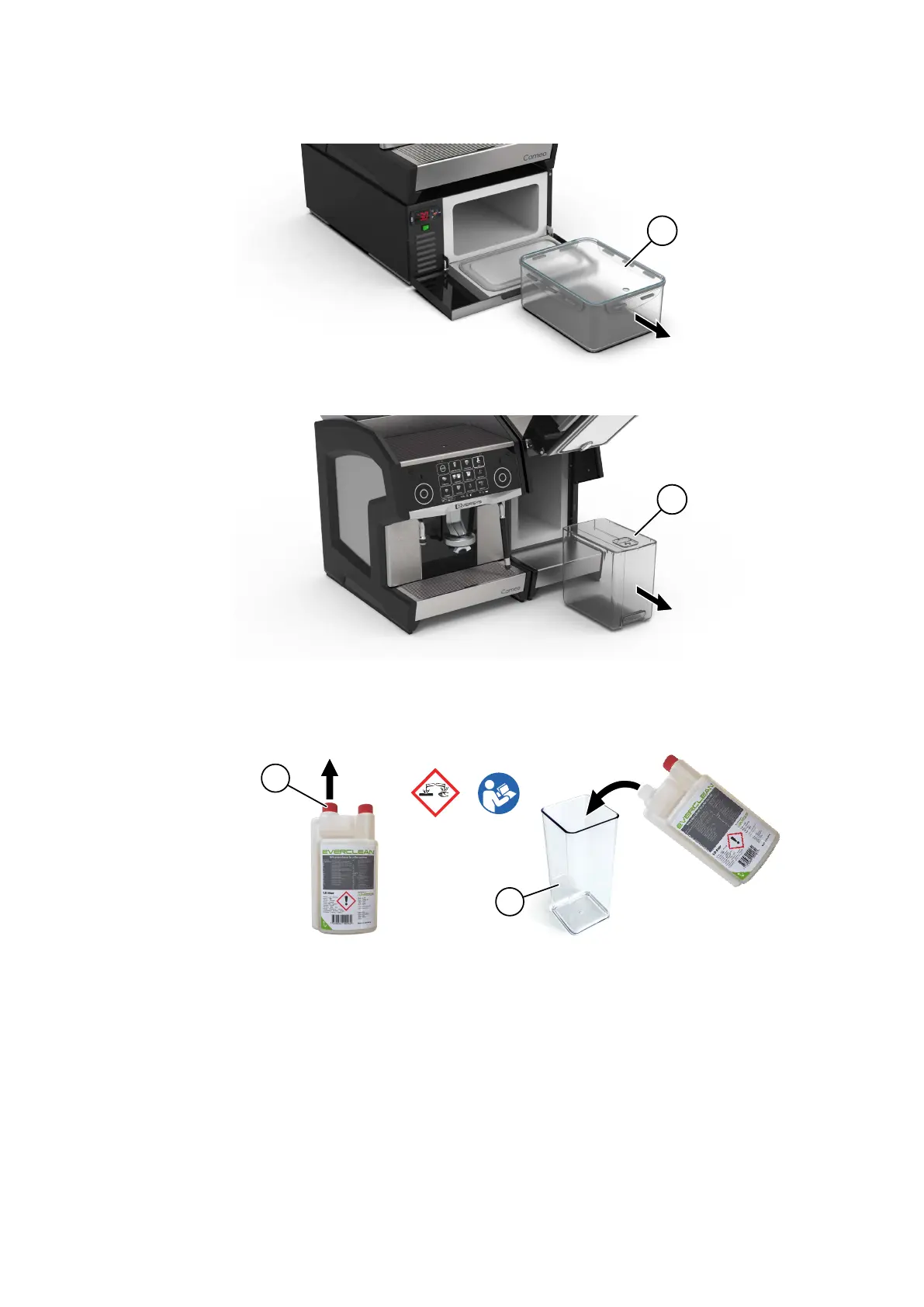• If necessary, empty and clean the milk tank | container and the inside of the fridge.