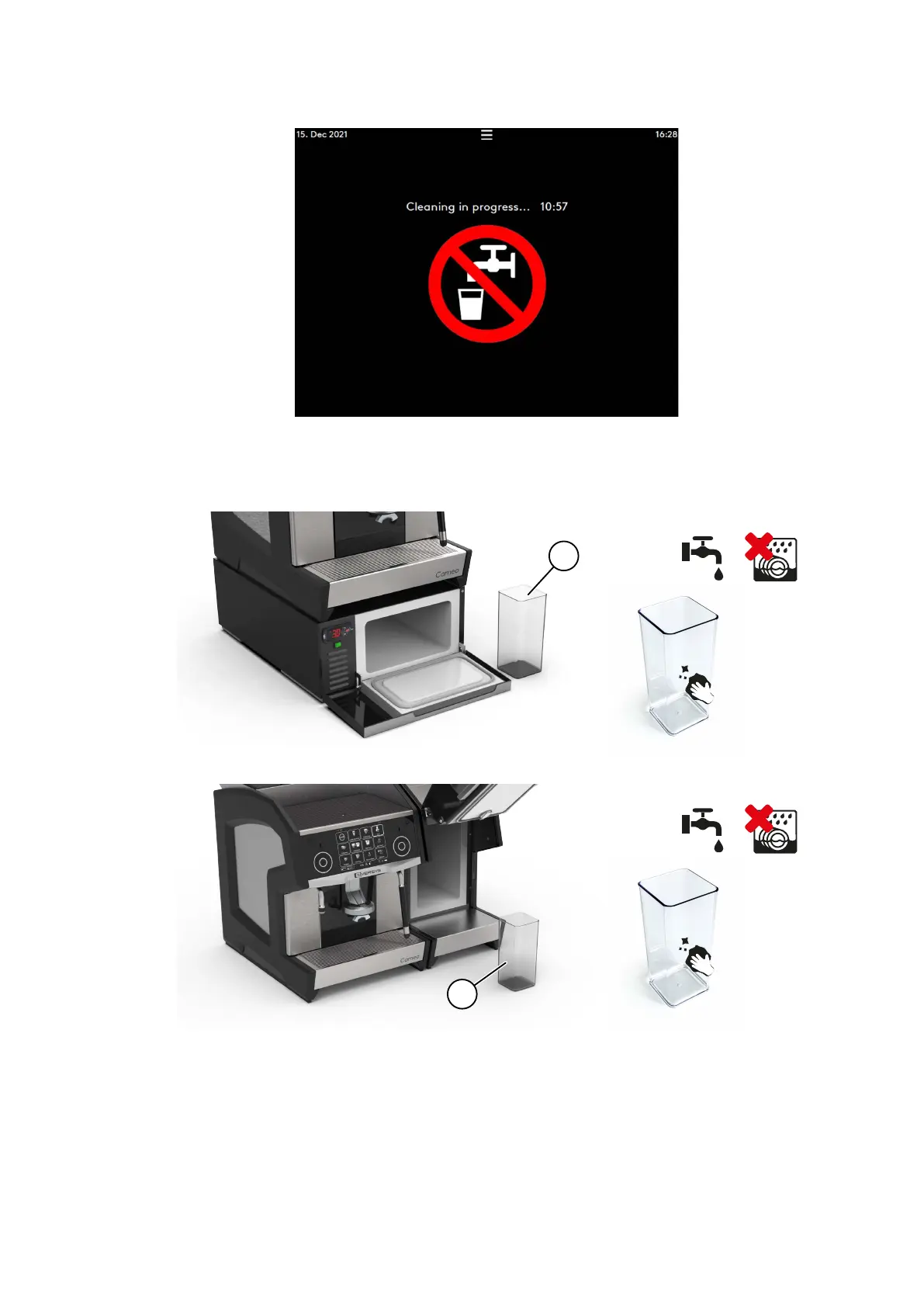 • Clean the milk tank tube with a damp single-use cloth and put the milk tank (4) back to its