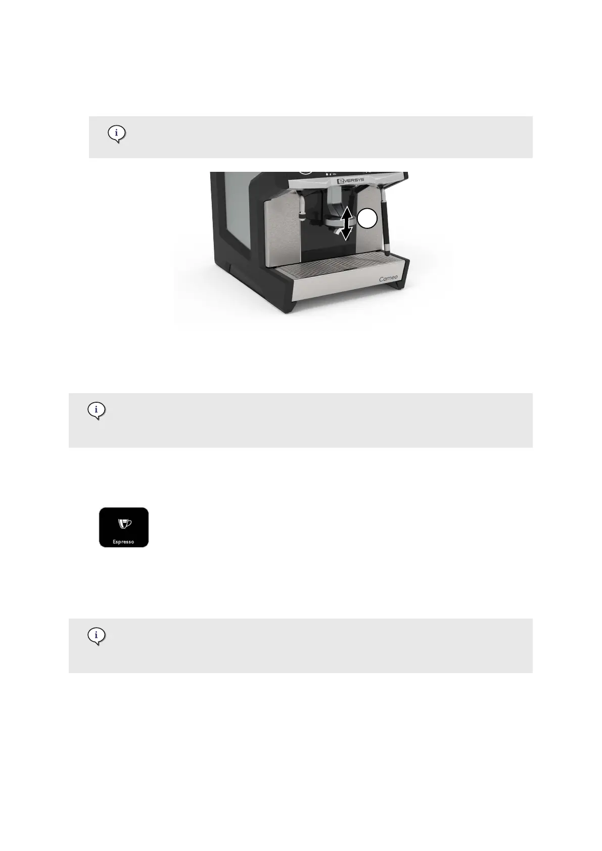 Eversys C2m-2021 - Adjust the Coffee Spout Height; Dispense a Single Coffee Product; Dispense a Double Coffee Product