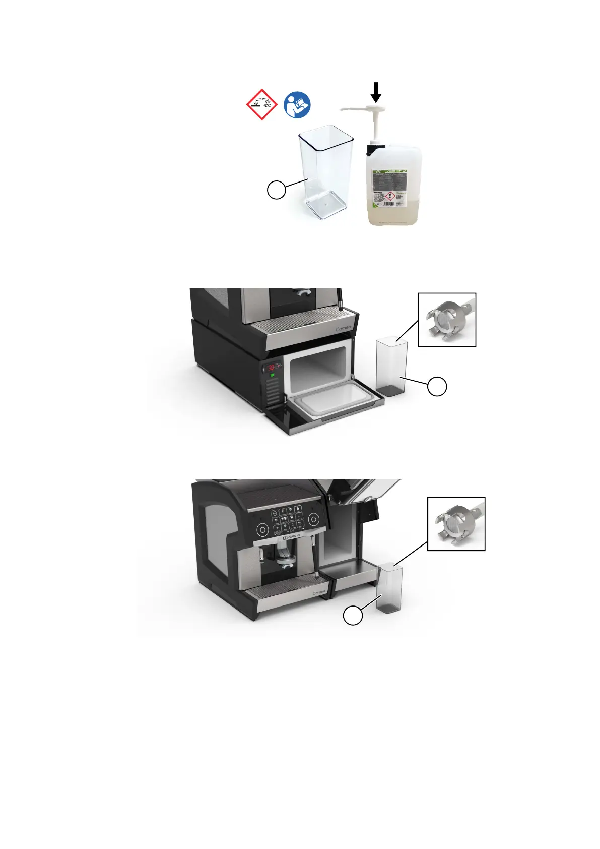 Place the milk tube inside the cleaning tank (6). Ensure that it correctly lays at the bottom