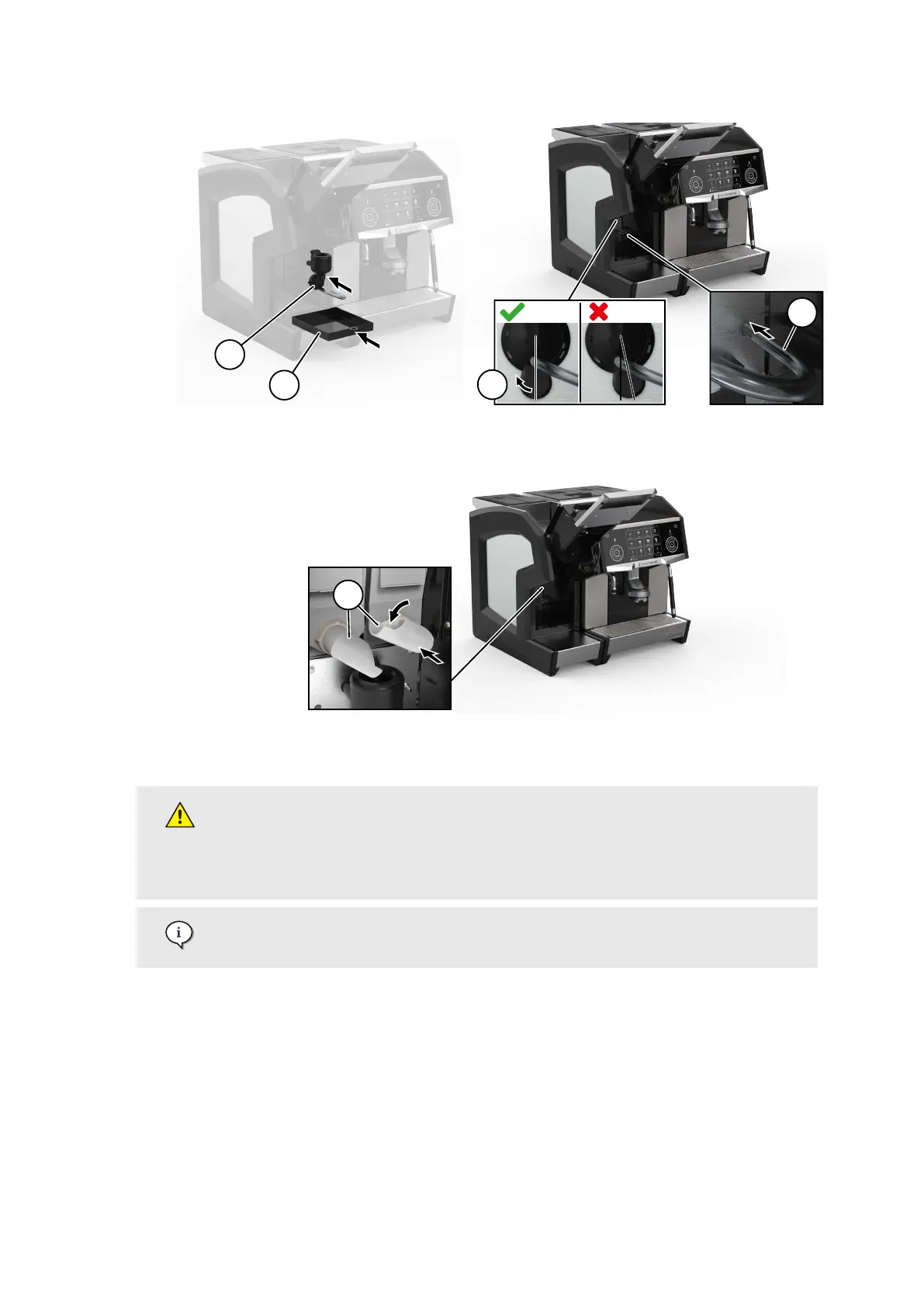 • Put the powder chutes (7) back to their original position.