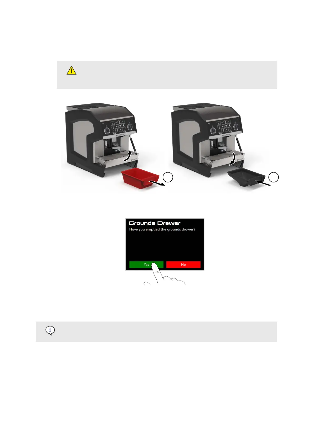 14. Press Yes to acknowledge emptying of the grounds drawer (or No to cancel).