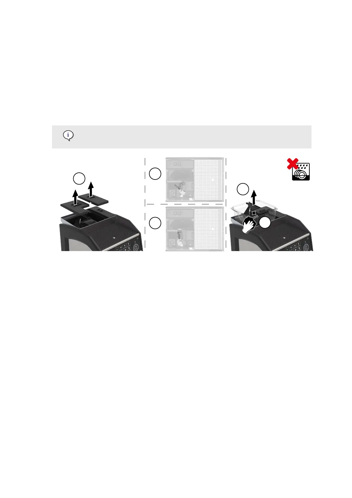 4. Remove the bean hoppers (3) and store the beans for re-use.