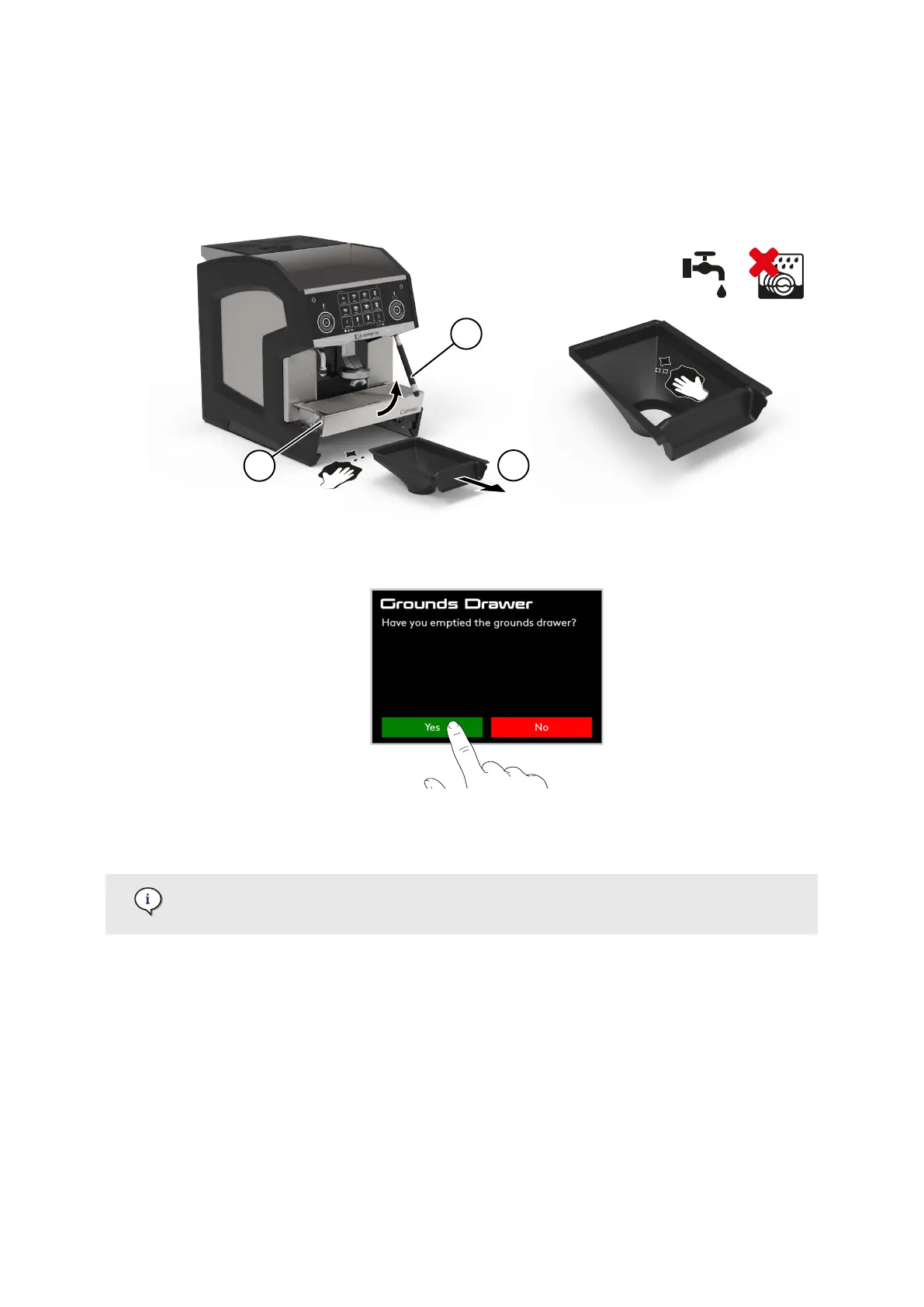 6. Press Yes to acknowledge emptying of the grounds drawer (or No to cancel).