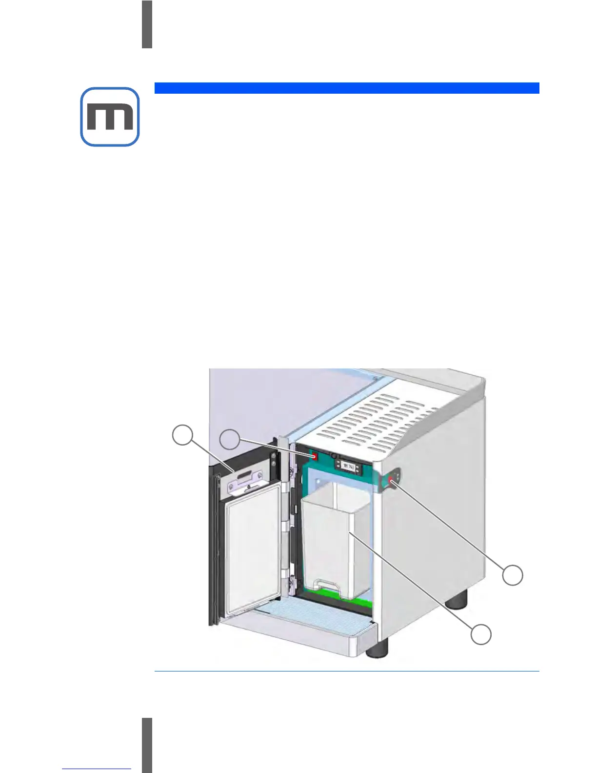 6 Turn the cup heater on by pushing the ON/OFF switch (4)