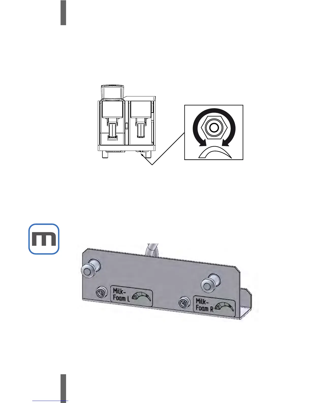 The milk foam air regulator is located underneath the steam boiler