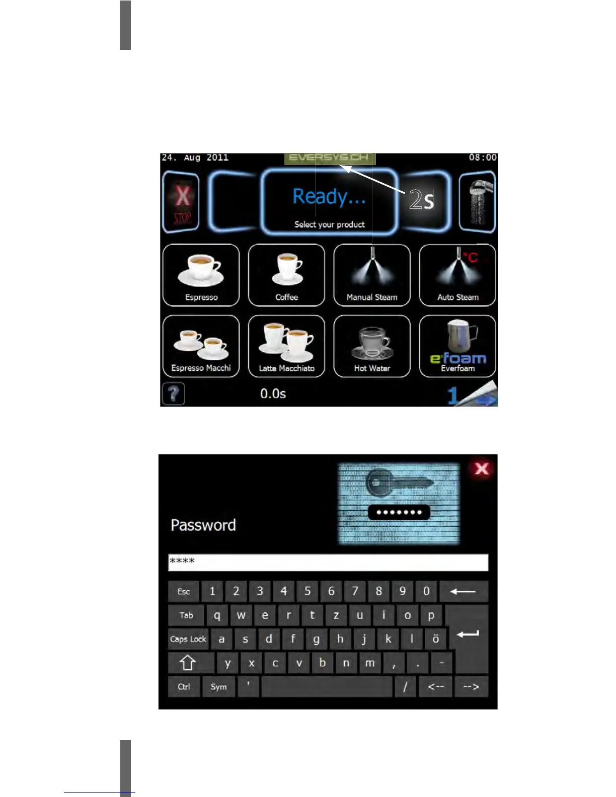 Eversys e'2ct - 1 Navigation; 1.1 Entering the Service Menu