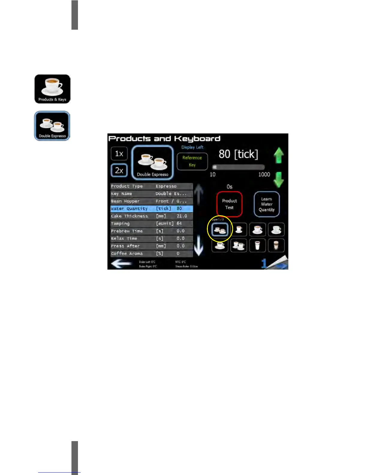 Eversys e'2ct - 4 Product Settings; 4.1 Product Selection