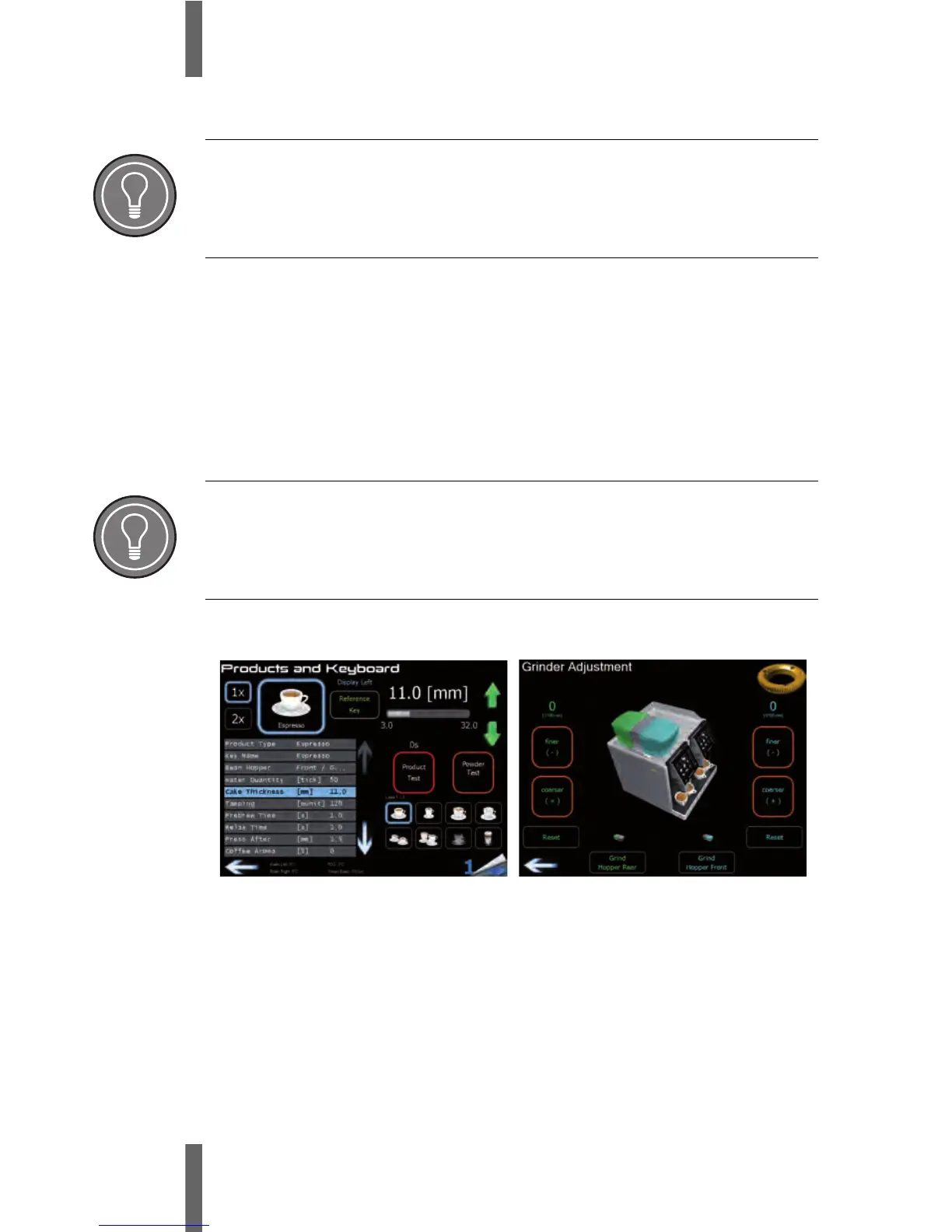 menu “Grinder Adjustment” on the right touch screen.